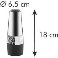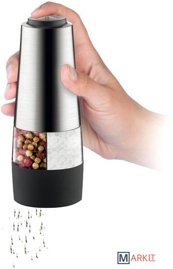 Электрическая мельница для приготовления свежемолотого перца и соли. Первоклассный механизм имеет керамические колесики для тщательного перемалывания. С удобной закрывающейся крышкой, что не позволяет рассыпаться остаткам специй. Изготовлена из высококачественной нержавеющей стали и прочной пластмассы, снабженную мощным двигателем. 6 А. А., батарейки ААА, 1,5 В не входят в комплект.