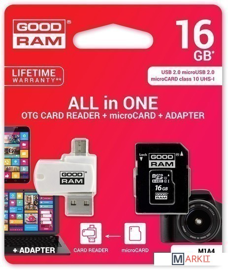 Markit » Карты памяти » Карта памяти GOODRAM ALL in ONE microSDHC (Class 10) 16GB [M1A4-0160R11]